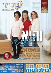 ליל הסדר ישיבת בין הזמנים סיורים ביום שני חוה"מ שביעי של שטח הפסח הזה בס"ד 3051 ע י ת ו ן לצ י ב ו ר הדת י 01.04.26 | ערב פסח תשפ"ו | 679 גיליון מודעה החלוצות הדתיות החדשות במטולה נשארו לבד עם הילדים, ללא בני הזוג שגויסו מחדש למילואים, אך אינן "אנחנו • חושבות לעזוב אפילו לרגע חיות את הניגודיות בין שריקות הטילים "העמידה יחד במצב הזה • לנוף המרהיב" מקרבת בינינו לבין השכנים" 6 , אלון פרל והיא שעמדה כך חוגגים את פסח בזמן מארב בלבנון 12 , משה ויסטוך • מתמגנים ומטיילים הצעות לחול המועד 30-22 איך שולחן הסדר של "סיינפלד" היה נראה? 32 , צביקה זינגר 4 2 , ר ט ו ר ן ו ר ש ם י י נ י ע ע ב ר א ב ת ו י ל ד ל כ י מ ! ח מ ש ג ח